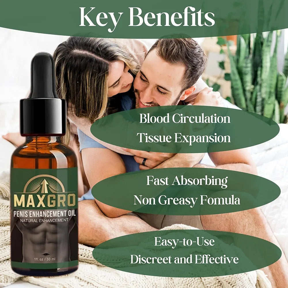 Supports Natural Growth & Thickness – Unlock your full potential with MaxGro Enhancement Oil, a powerful blend designed to support natural growth, helping you achieve a thicker, stronger, and longer experience over time. This advanced formula works by stimulating blood circulation to promote better overall male performance.
